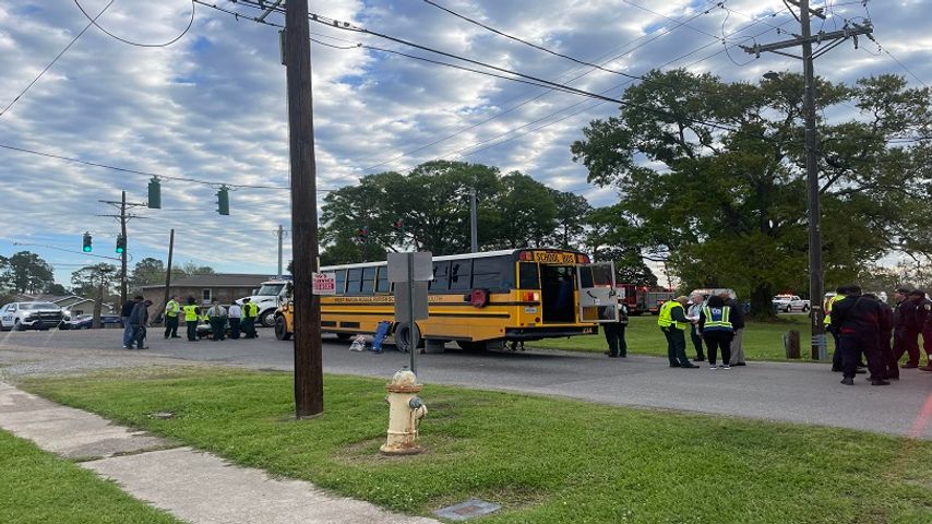 An Acadian ambulance was towed from the scene. The Acadian Ambulance company says, the ambulance was not transporting a patient at the time and two paramedics immediately assisted students on the bus. Four more ambulances were called to the scene.