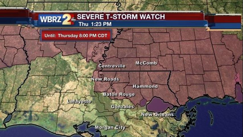 The National Weather Service issued a severe thunderstorm watch for parishes north of Interstate 12 as well as Point Coupee Parish until 8 p.m.
