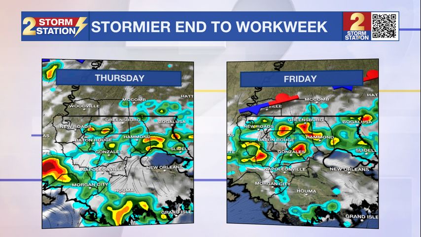 Thursday AM Forecast: Wetter pattern to end workweek, Possible dip in humidity next week