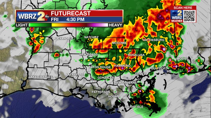 Have a way to receive warnings. Be sure to avoid driving during a severe thunderstorm or flash flood warning. Reminder: With the threat for impactful weather— strong storms—please have access to alerts through Friday. You can download or activate the WBRZ WX App on your Apple or Android device or turn on a NOAA Weather Radio for bulletins such as watches and urgent warnings. Of course, WBRZ, WBRZ+ and the Cable Weather Channel will have updates as active weather dictates.