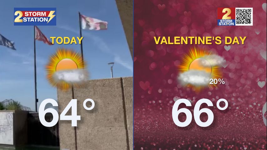 Chilly mornings and mild afternoons take over to end the workweek. Those with Valentine's Day plans or heading out to Alex Box Stadium for Opening Day may dodge a spotty shower or two, but the next major rainmaker will arrive Saturday night.