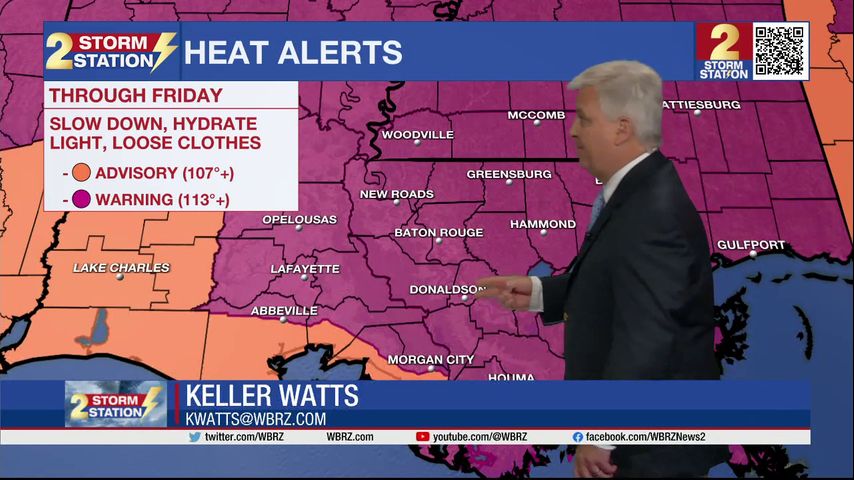 An *EXCESSIVE HEAT WARNING* will once again remain in effect across southeast Louisiana on Friday. This means heat index values could go over 113 degrees for a period of two hours. Hot temperatures and high humidity combined may cause heat illnesses to occur.