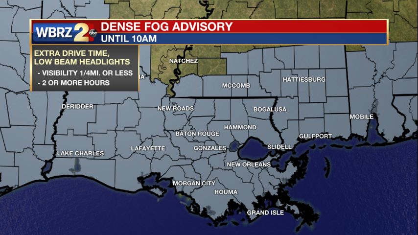 *DENSE FOG ADVISORY* for the shaded area. Take it easy driving and check with @WBRZtraffic for updates. #lawx #mswx pic.twitter.com/uGOyT47fiN