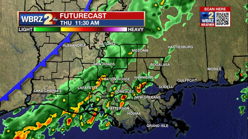 Today & Tonight: Rain is on the way. A cold front will be making it through the area all morning long. Showers will be in and out along the front. Not everyone will see rain this morning, but it will be cloudy and gloomy. Showers will reach the Baton Rouge area around 10 a.m. and all areas will be clearing in the afternoon. With a few more peaks of sunshine, temperatures will reach the 70s. Tonight will be clear with temperatures in the low 50s.