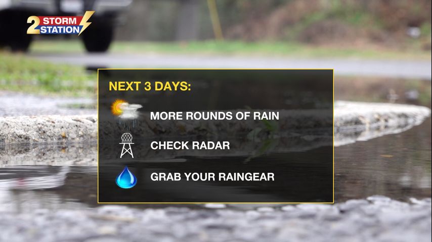 Deep tropical moisture continues to sit over southern Louisiana, motivating shower and storm development to roll through the Capital Area in waves in the coming days. Heavy downpours are possible but the risk for flooding remains low at this time.