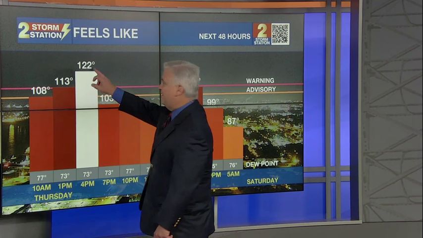 An ***EXCESSIVE HEAT WARNING*** will be in effect on Thursday. Hot temperatures in the 100s will pair with enough humidity to create feels-like temperatures over 113 degrees. Remain hydrated and don’t overexert outdoors.