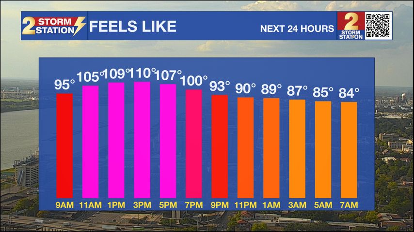 A *HEAT ADVISORY* in effect from 11am to 7pm today across the entire viewing area will cause the feels-like temperatures to be as high as 112.