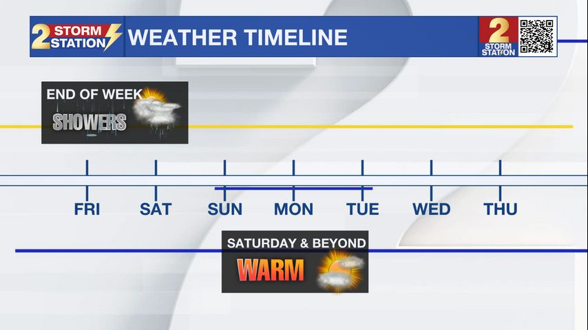 Passing showers and thunderstorms continue to end the workweek. This weekend brings drier conditions and much warmer temperatures.