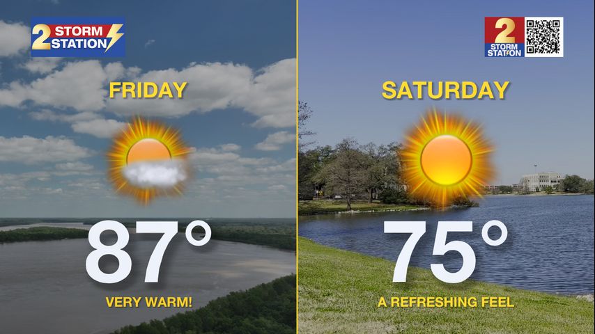 Up Next: The peak of this early spring warmth will arrive Friday. Highs will rise to near 87 degrees under mostly sunny skies. Changes arrive just in time for the weekend as a front passes through. It will get here late Friday and early Saturday, dropping humidity and temperatures. Highs will reach into the mid-70s for the first half of the weekend, before warming to 80 degrees Sunday. Rain will be almost non-existent, and sunshine will be abundant.