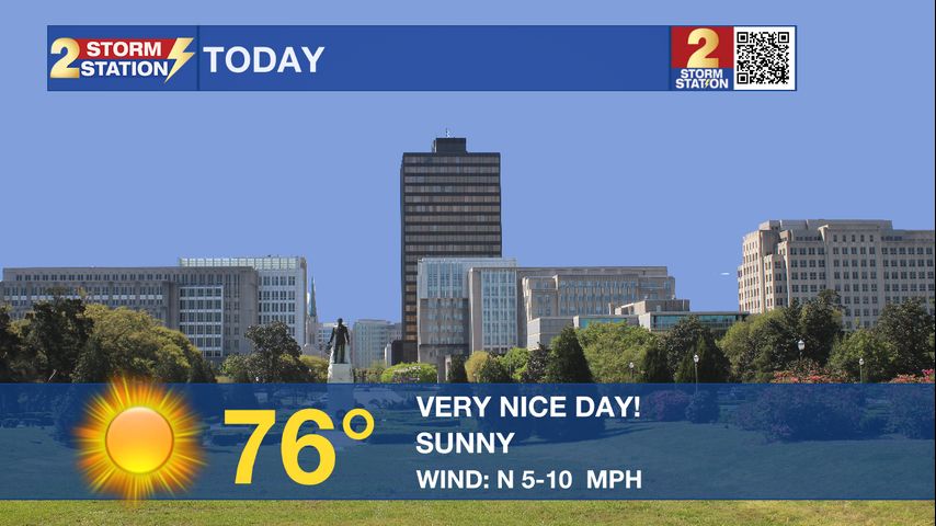 Today & Tonight: Sunrise this morning at 6:58am will display mainly clear skies and temperatures in the upper 40's. With plenty of sunshine all day today and light northerly winds, an afternoon high near 76° is expected in the Capital Area. Skies will remain clear overnight, allowing temperatures to cool back down into the mid-40s for another chilly start on Friday.