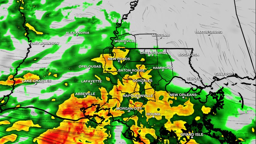 Up Next: After a possible round of scattered showers and storms Friday morning, the midday hours continue to trend much quieter. We could even see partly sunny skies during the early afternoon hours which will allow temperatures to warm into the mid-70s and recharge the atmosphere for a final push of storms to end the workweek. The final round of isolated storms will be during the afternoon hours with spotty activity into the evening. While Friday will not be a washout, the isolated activity could put a damper on Friday evening plans, including LSU Baseball. Within the isolated storms Friday, hail, heavy downpours and gusty winds cannot be ruled out. Rain totals over the next 48 hours are expected to remain limited, with most areas seeing less than an inch.