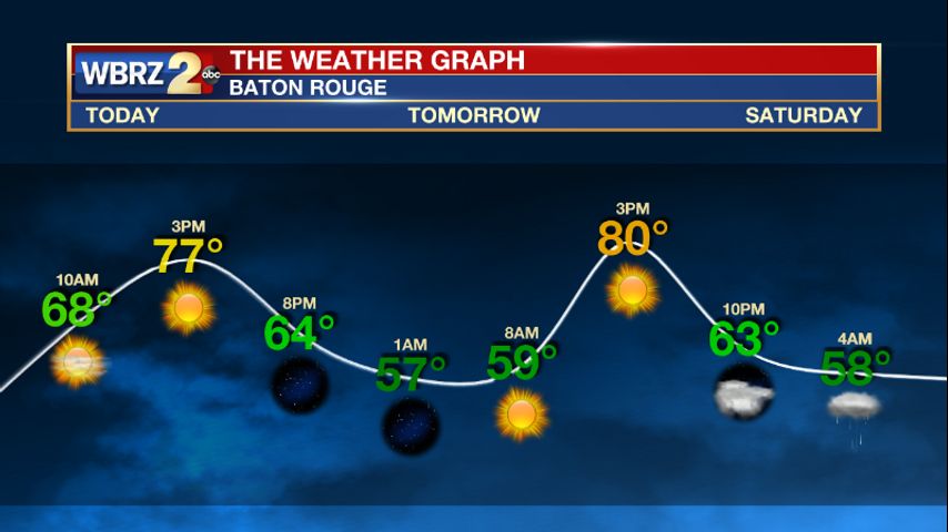 Hour-by-hour weather tracking is available for your location on the WBRZ WX App on your Apple or Android device. Follow WBRZ Weather on Facebook and Twitter for even more weather updates and unique weather insight from the whole team!