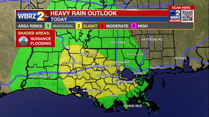 Reminder: With the threat for impactful weather— street and poor drainage flood —please have access to alerts through this week. You can download or activate the WBRZ WX App on your Apple or Android device or turn on a NOAA Weather Radio for bulletins such as watches and urgent warnings. Of course, WBRZ, WBRZ+ and the Cable Weather Channel will have updates as active weather dictates.