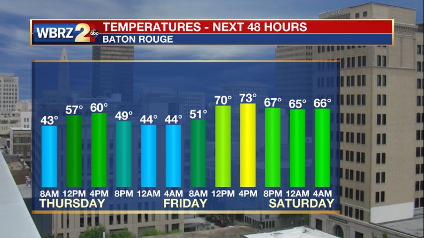 Hour-by-hour weather tracking is available for your location on the WBRZ WX App on your Apple or Android device. Follow WBRZ Weather on Facebook and Twitter for even more weather updates and unique weather insight from the whole team!