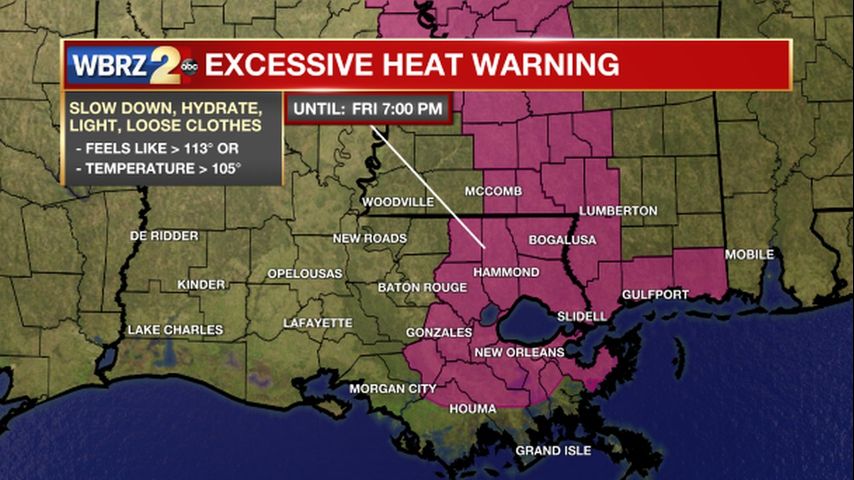 UPDATE: An excessive heat warning will be in effect for parts of the WBRZ viewing area until 7 p.m. Friday. READ MORE HERE.