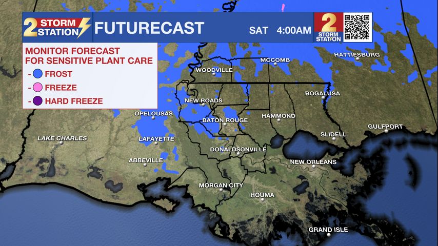 Tonight & Tomorrow: With clear skies and light winds, low temperatures will dive back into the upper 30s and low 40s. Patchy frost will be possible, mainly north of Baton Rouge. Friday will remain clear with high temperatures in the upper 60s. Take a jacket when you head out to any high school football playoff games as temperatures will quickly fall through the 50s.