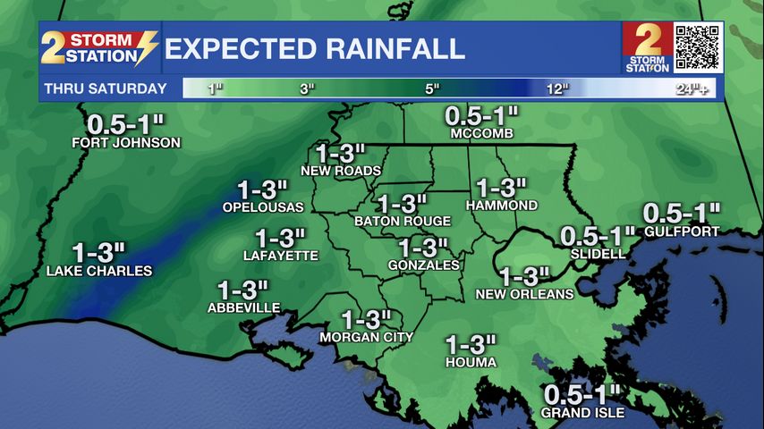 Up Next: By Saturday afternoon, rain chances will start to decrease, though some lingering showers are possible. The temperature will still be mild, topping out around 80°. Conditions should be improving for LSU Baseball to eventually play. Sunday looks like the best day of the weekend for outdoor activities. A spotty shower or thunderstorm remains possible, but overall, it will be warm and partly sunny, with highs climbing to the mid-80s.