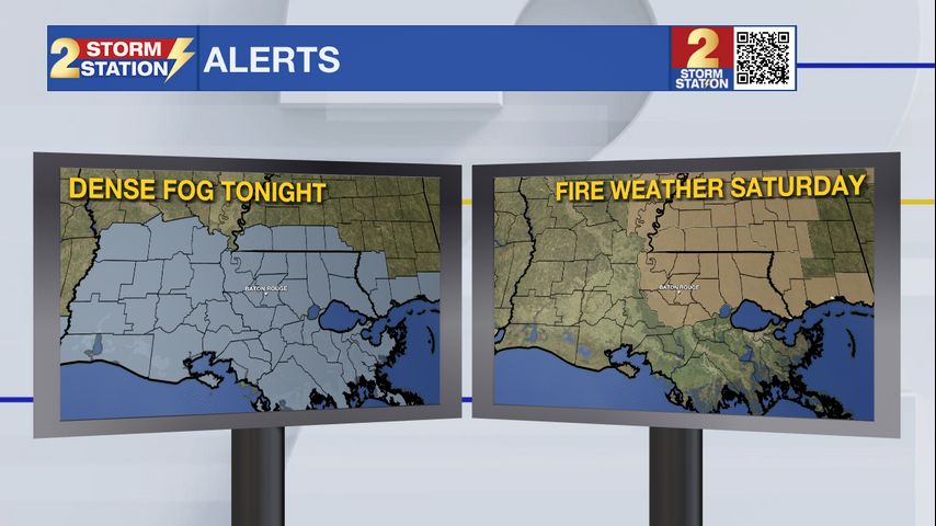Fire Weather Watch: The National Weather Service has also issued a FIRE WEATHER WATCH for portions of southeast Louisiana and south Mississippi, in effect from Saturday morning through Saturday evening. A much drier air mass, gusty northwesterly winds of 10 to 15 mph, and relative humidity values as low as 20 to 25 percent will combine to create conditions favorable for the development and rapid spread of wildfires. Use extreme caution with any ignition sources and be aware of any burn bans in your area.