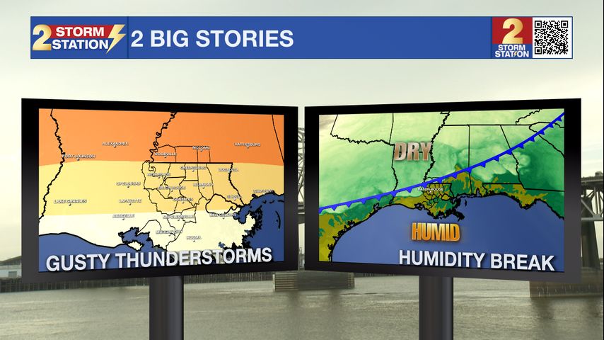Tonight & Tomorrow: Overnight, a cold front is expected to bring a batch of showers and thunderstorms. The atmosphere is set up to support strong, damaging wind gusts during thunderstorms and possibly even hail. The best chance for severe weather, and rain for that matter, will be north of the state line. South of that to about the I-10/12 corridor, rain will be more isolated in nature and so will the threat for severe weather. Most of the activity will occur between 10pm – 3am with clearing expected by daybreak. Low temperatures will remain mild in the low 70s.