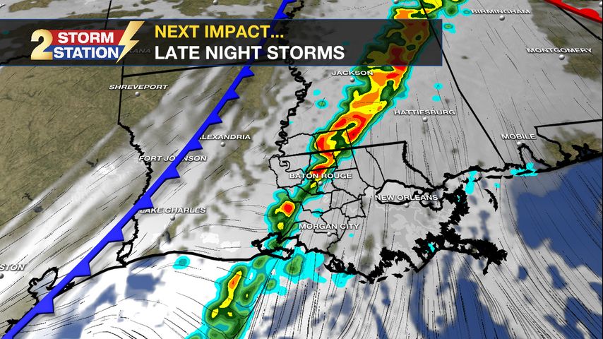 Speaking of which, there is another line of storms taking shape in western Louisiana. That could affect the Capital Area later. There has also been an update to the severe weather outlook. Read more in the Tonight section below.