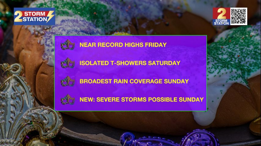 After a very warm finish to a February workweek, the Mardi Gras weekend will have some weather woes. Rain and even thunderstorms could interfere with a few of the many outdoor events.