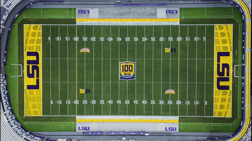 BATON ROUGE - In honor of Tiger Stadium reaching 100 years of use, the football field has a fresh look. Instead of the iconic tiger eye logo, it's now sporting a graphic celebrating a century of football.