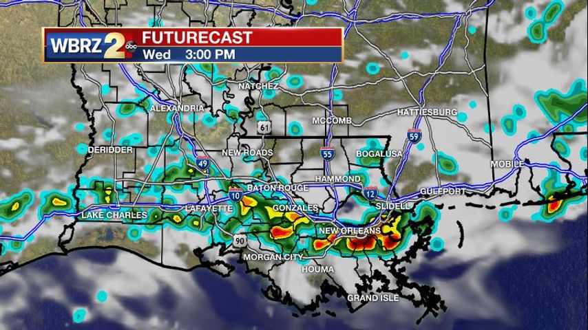 The entire WBRZ Weather forecast area picked up measurable rain on Tuesday. Some locations, mainly south of I-10, received more than 3 inches of rain with radar estimates as high as 5 inches. Less widespread and less persistent storms should result in lower amounts in the coming days.