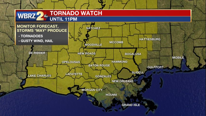 TORNADO WATCH issued for entire WBRZ Viewing Area