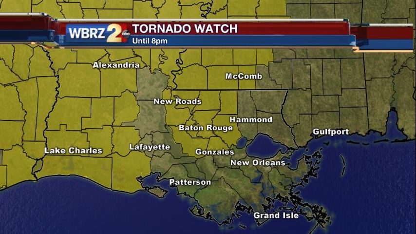 The National Weather Service has issued a *TORNADO WATCH* for parts of the WBRZ Weather forecast area until 8pm.