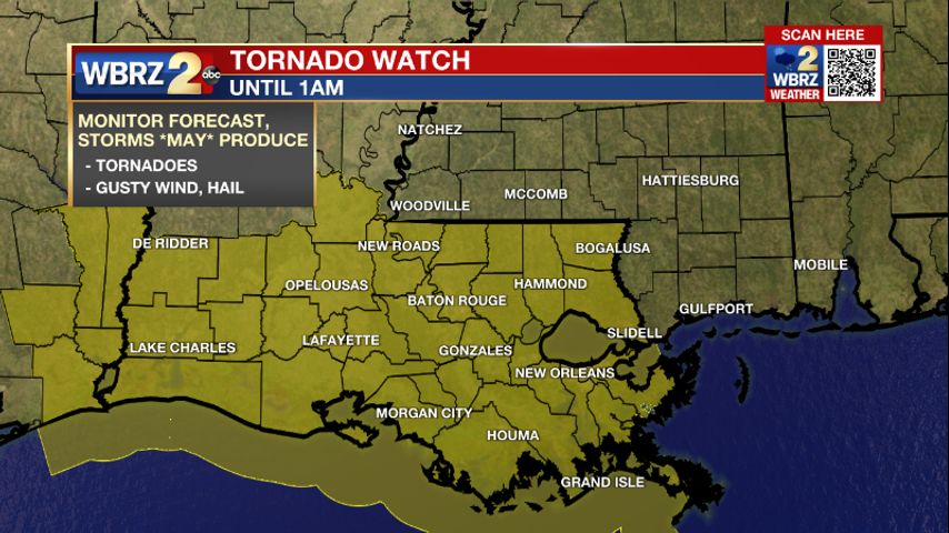 TORNADO WATCH issued for southeast Louisiana until 1am