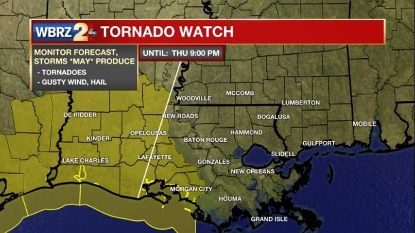 The National Weather Service has issued a TORNADO WATCH for St. Mary Parish and is active until 9 pm.
