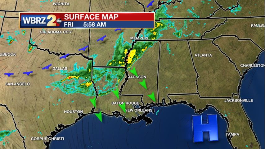 Up Next: The cold front is expected to stall out over the area overnight, so a few more showers are in the forecast for Saturday. Saturday afternoon will be a touch cooler with temperatures in the low to mid-80s and showers are most likely for areas south of Baton Rouge. By the end of the day Saturday, the front will move south of the coastline and dry air will move in behind it. The rest of the weekend looks dry. Temperatures on Sunday and Monday will be in the mid to upper 80s with mostly sunny skies. Click here to see the 7-day forecast.