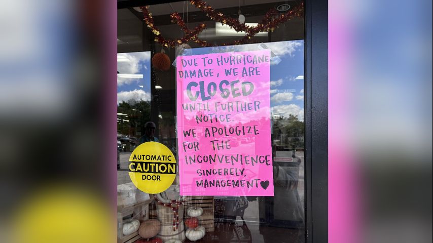 A sign posted to the window Friday morning said, "Due to hurricane damage, we are closed until further notice."