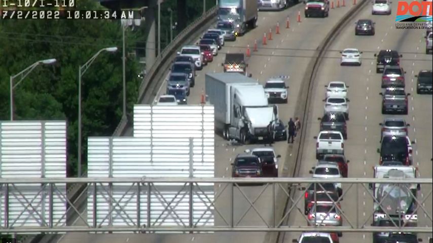 Traffic stalled on Miss. River Bridge from six vehicle crash including 18-wheeler