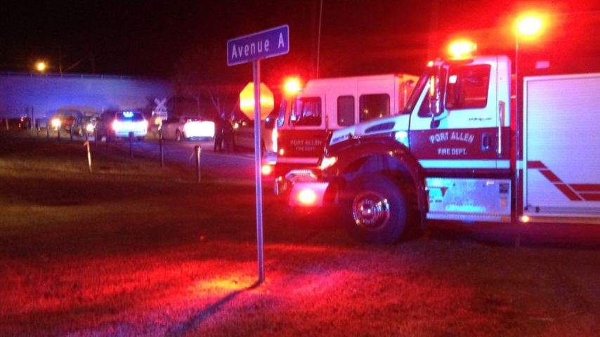 PORT ALLEN - A driver and her young passengers were in a car hit by a train here Thursday night.