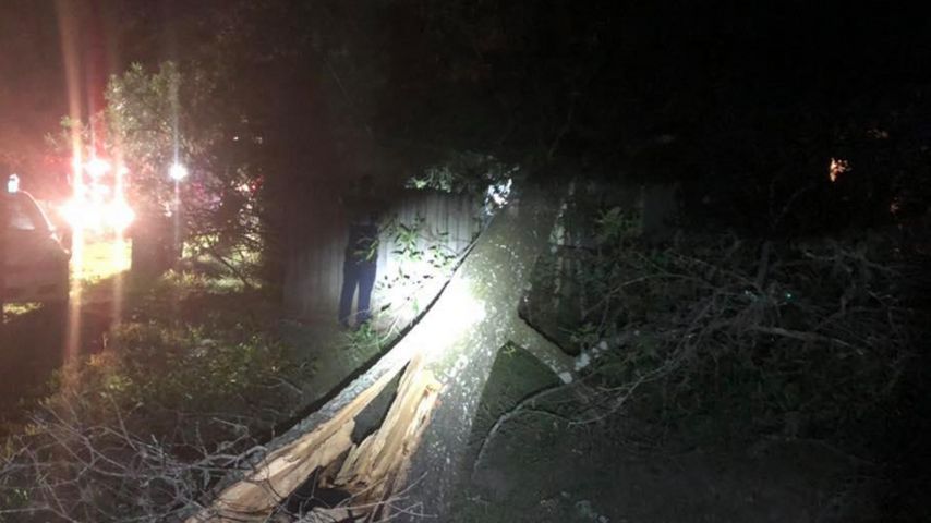 The damage may likely be the first reports of such ahead of the storm, still hours from landfall when the tree crashed down late Friday.