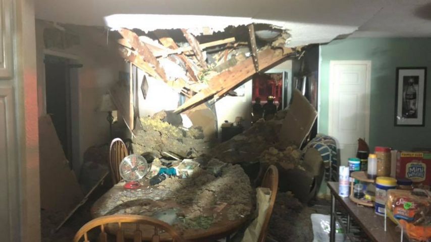 The tree, which appeared to be somewhat tall in dark pictures shared by first responders, crashed through the roof and smashed into the dining room of a home on Welcome Hites Drive off Blackwater Road sometime between 10 p.m. and midnight.