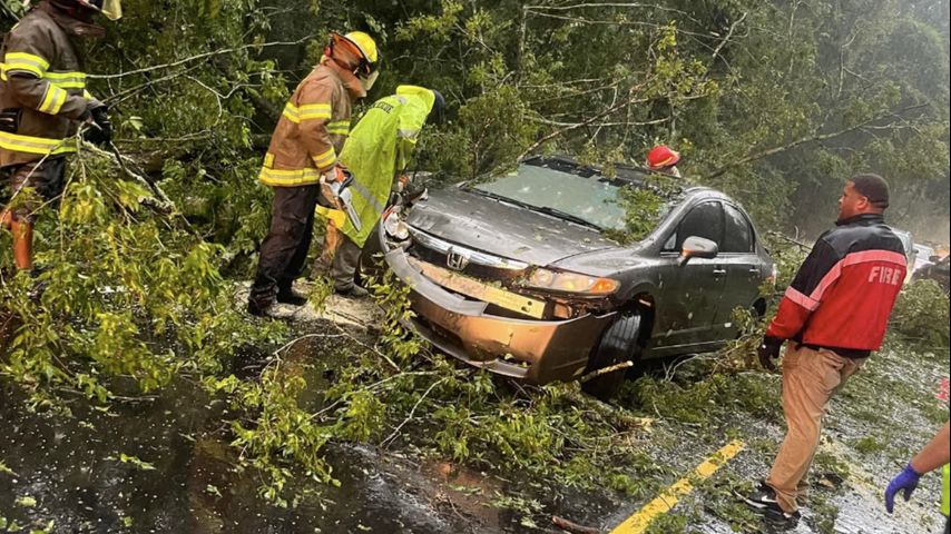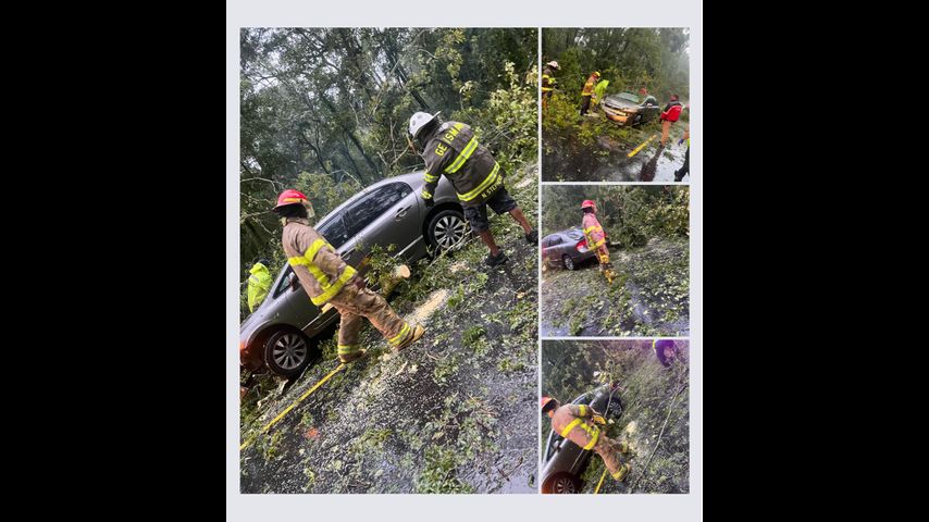 Firefighters with the Geismar Volunteer Fire Department arrived at the intersection of Bluff Road and Highway 74 to find a tree had fallen on a car with the driver still inside. They were able to remove the tree limbs and pull the driver out.