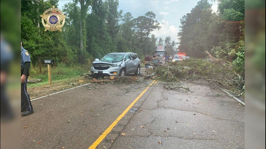 Tree falls on vehicle along Hwy 43 in Livingston Parish