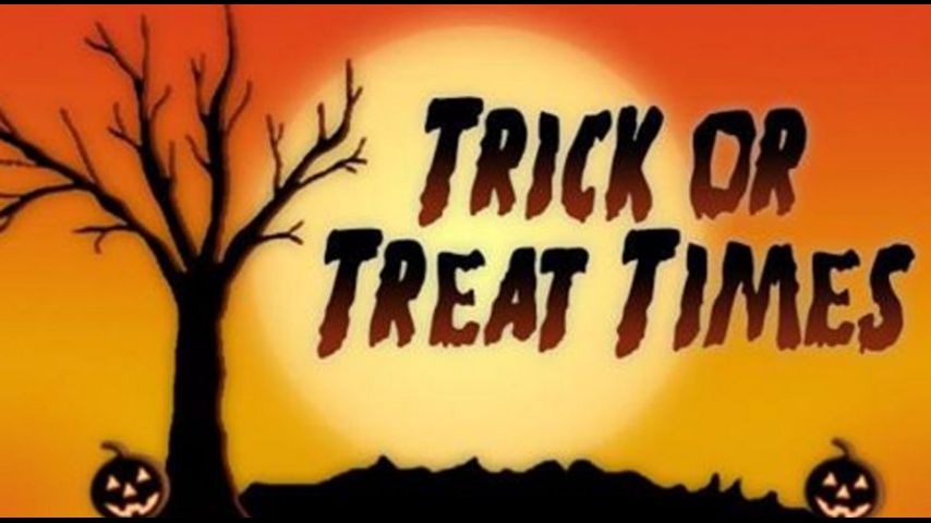 The following are the times for trick-or-treating on Tuesday, Oct. 31.: