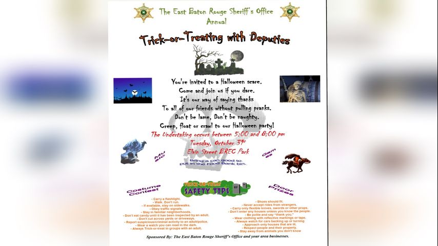 EAST BATON ROUGE- The East Baton Rouge Sheriff's Office will host its annual Trick-or-Treat with Deputies on Halloween.
