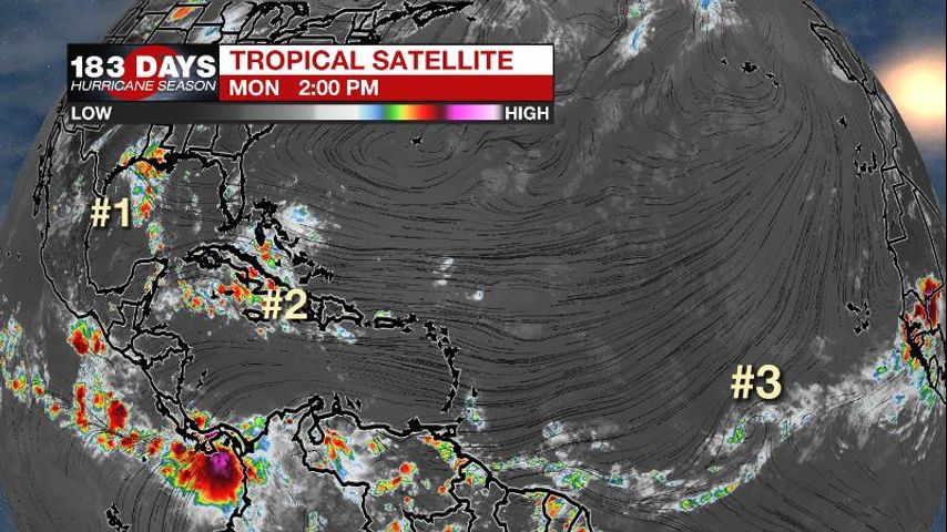 The Tropics: Responsible for showers and thunderstorms on Monday, a weak low pressure system over the northwestern Gulf of Mexico will drift into Texas by Tuesday before any substantial development can occur. Disorganized showers and thunderstorms near the Bahamas will move west-northwestward through the Straits of Florida and over the southeastern Gulf of Mexico by Tuesday. By then, environmental conditions could become a little more conducive for development of the system and the National Hurricane Center puts a formation chance at 20 percent. The current forecast is for this system to cross the central Gulf of Mexico, reaching Texas by the end of the week. Shower activity associated with a tropical wave located about 1000 miles west-southwest of the Cabo Verde Islands has changed little in organization during the past several hours. Though there may be a window of opportunity for development as this system moves west-northwestward over the next few days, environmental conditions are forecast to become unfavorable for tropical cyclone formation by the end of the week.