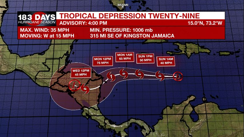 Tropical Depression 29 forms in Caribbean Sea