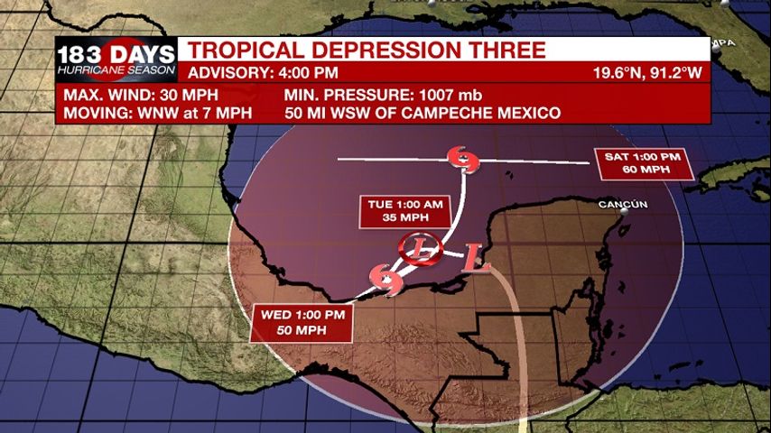 Tropical Depression 3 has formed in the Bay of Campeche off of the southern Gulf of Mexico.