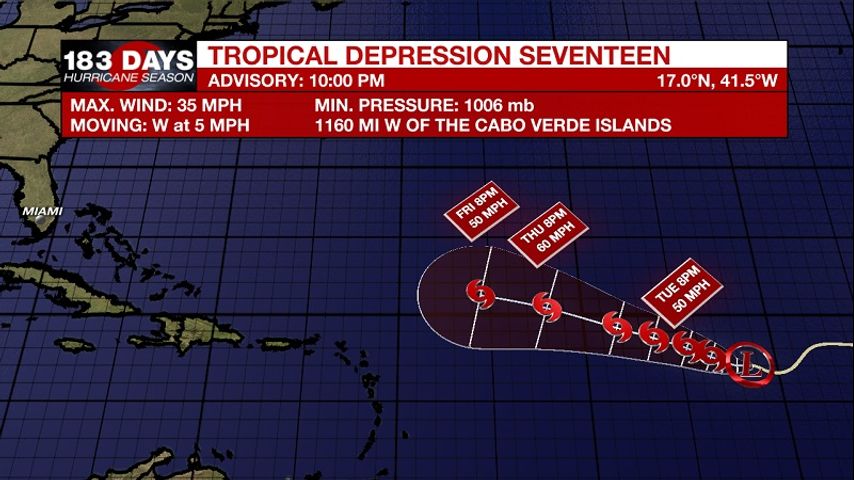 Tropical Depression Seventeen forms in the Atlantic