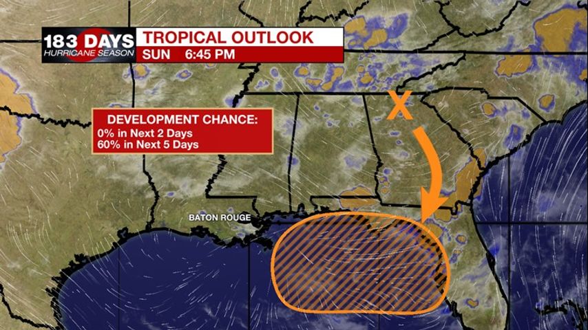 More hot and humid weather is in the forecast through the early part of the workweek, as high pressure is still the dominating and located in southwest Louisiana. Since it is not directly over us anymore and shifting west, Gulf moisture will now be able to efficiently move onshore to provide isolated afternoon showers and storms Monday and Tuesday. The high continues west into Texas through the midweek, bumping up the available moisture as afternoon storms become more scattered Wednesday and Thursday. Winds will stay out of the south through the week, keeping high temperatures hot and above average in the mid-90s. There is now a fairly good chance of a low to develop into a tropical system just offshore of Florida’s panhandle later in the week, as the National Hurricane is forecasting a 60% chance of tropical develop within the next 5 days. This is based on the fact that sea surface temperatures are in the upper 80s, and upper-level wind shear is low in the eastern Gulf. Models have a tough time after the wave makes it in the Gulf and increases to a low pressure, but it will likely bring an increase in rainfall as we proceed into the weekend. We are still about 3 days out from this low potentially forming, and 5 to 6 days out from impacting the Gulf Coast, so forecast confidence is low. It is important to stay updated on this storm’s potential to gain tropical characteristics, and its forecast track. Stay Tuned.