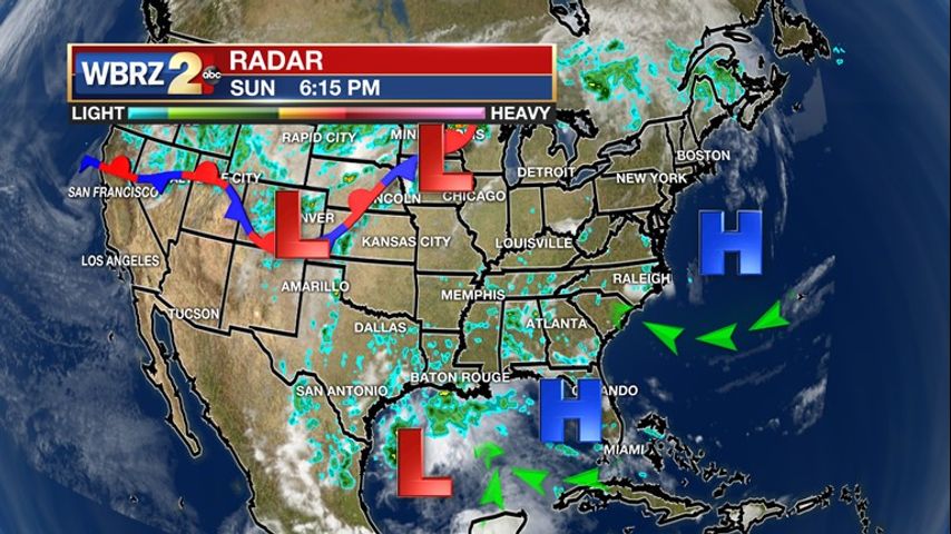 The tropical wave is still slowly approaching the Texas Coast. This wave is not organized, and is unlikely to strengthen into a system, but regardless, is pushing significant moisture onshore into Texas and Louisiana. The majority of this moisture is moving onshore along Southwestern Louisiana, because the strong high pressure that is along the East Coast has begun to push across Florida and into the Eastern Gulf of Mexico. This is helping to push the tropical low into Texas, but also helping to keep areas of Central and Eastern Louisiana much drier than anticipated. This high pressure will slowly chip away at this tropical low as it is cornered along the Texas Coast through Tuesday, eventually weakening it and pushing it north along a frontal boundary that will steal its moisture. As high pressure wins the war, it will also begin to set up camp in the Gulf, allowing the consistency of onshore, southerly winds to help keep moisture levels heightened. Afternoon pop-up showers will stay isolated through the latter half of the week, eventually leading to drier conditions as we make our way into the weekend.