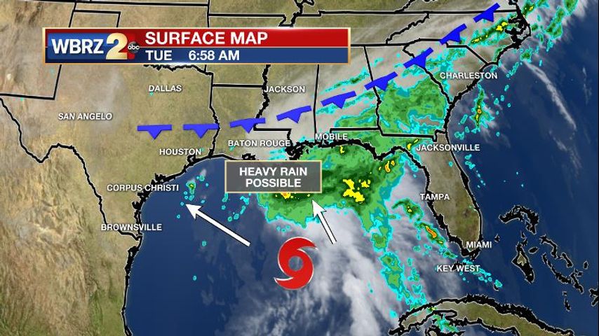 Up Next: Several weather factors are in place that may contribute to a period of heavy rainfall and subsequent flood potential on regional rivers and streams through at least Thursday. Uncertainty remains as to where exactly the heaviest rain occurs, and this may not be known until the strongest rain bands develop over land. However, confidence is high that some locations will receive rain amounts up to 10 inches since the atmosphere will pack near record levels of moisture. A general 3-6 inches of rain is expected across the WBRZ Weather forecast area. At this time, the highest amounts are expected to be south and east of Baton Rouge. As tropical systems interact with land, tornadoes become possible. Keep a severe weather plan in mind as well in case a tornado warning is issued. Due to rounds of rain and thunderstorms, temperatures will have small day to night ranges—from the mid 80s to mid 70s. The unsettled weather should begin to ease into a more typical summer pattern by the weekend.