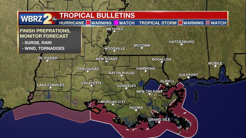 This is a developing story. Pat Shingleton will have an update during Monday's broadcasts. Check back for updates. Click HERE for WBRZ's latest weather updates.