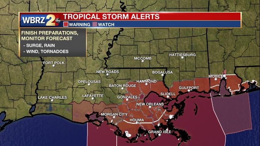 Tropical Storm Warning issued for parts of south Louisiana